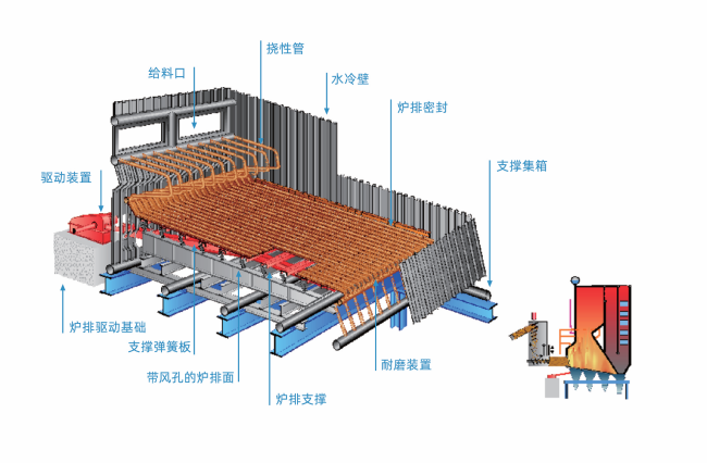 水冷系统通过有效降温,减少了对炉排的热损耗,有效地维护炉排使用寿命。